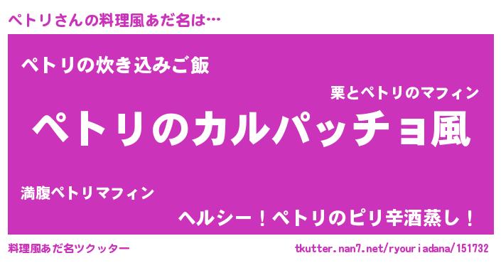 | ヘコむあだ名 | 『ペトリ(笑)』『なまこ酢』 |