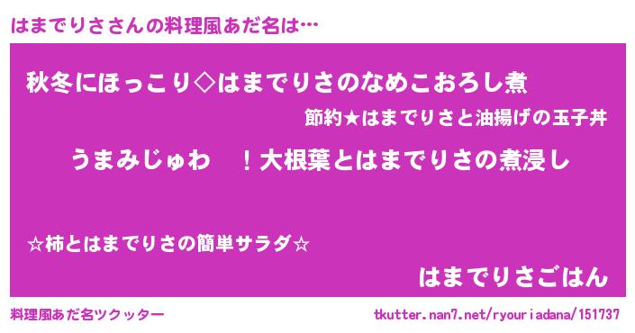 | 胡散臭い通販商品みたいなあだ名 | 『運命の人と巡り会える高級そうな壺…その名も「はまでりさ」』 |