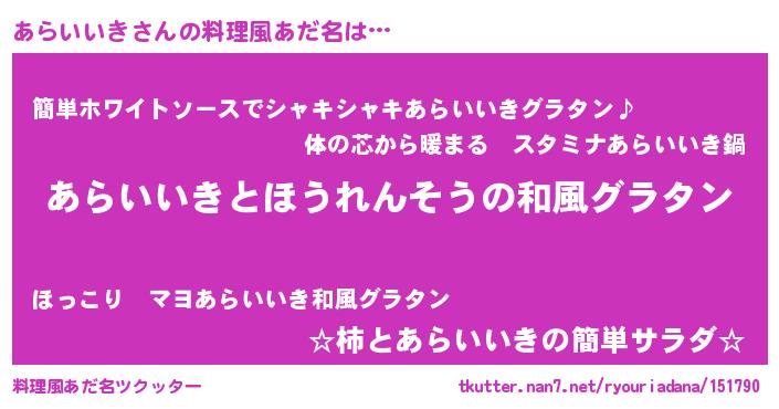 | ヘコむあだ名 | 『あらを』『牛乳』『あらっふぃ~』 |