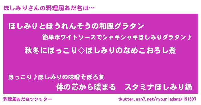 | 男性向けラノベタイトル風あだ名 | 『ほしみりに滅ぼされるだけの簡単なお仕事です』 |