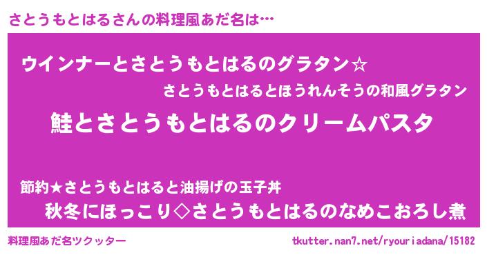 | 女子向けラノベタイトル風あだ名 | 『死神さとうもとはるの再婚』 |