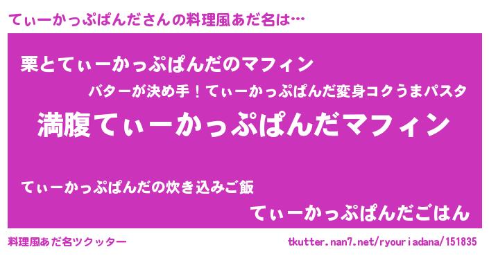 | 意味不明あだ名 | 『永久保存てぃーかっぷぱんだ』 |