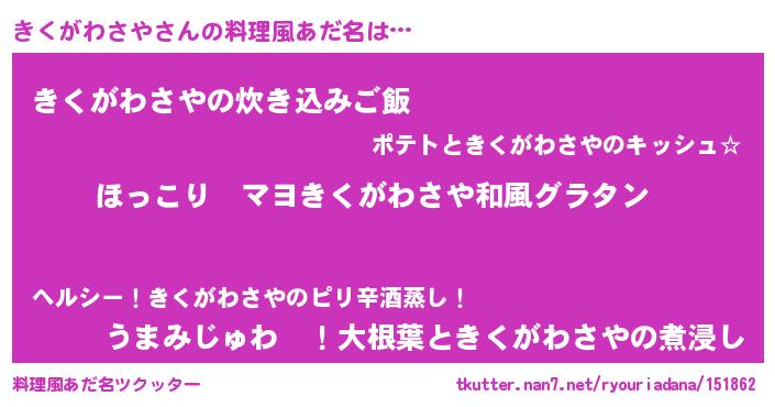 | 意味不明あだ名 | 『住所不定無職きくがわさや(98歳)』 |