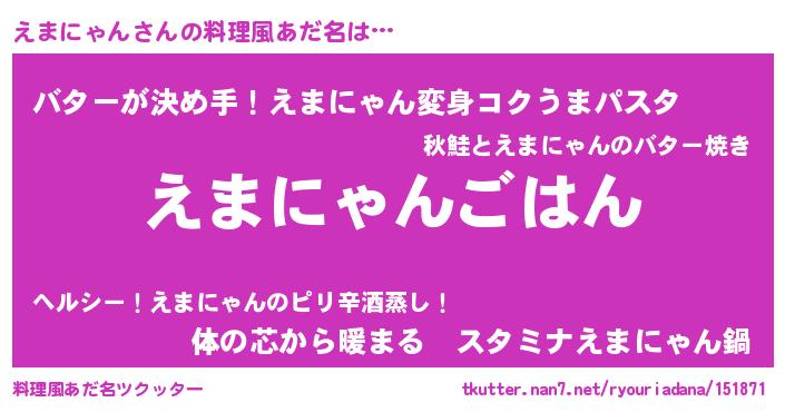 | 意味不明あだ名 | 『なめこ科えまにゃん属』 |