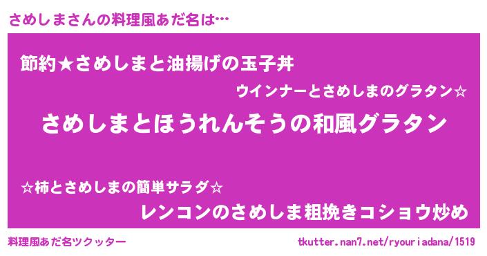 | 胡散臭い通販商品みたいなあだ名 | 『億万長者になれる水晶球…その名も「さめしま」』 |