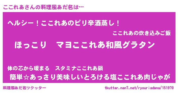 | ヒーロー風カッコイイあだ名 | 『仮面ココダー』『究極戦士ココレア』 |