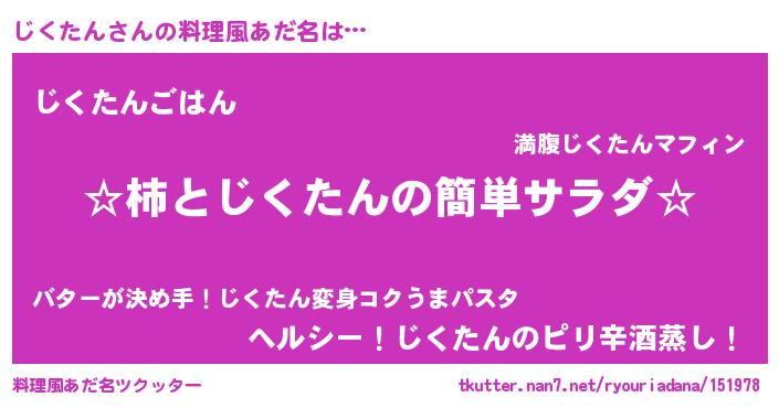 | 意味不明あだ名 | 『めかぶ科じくたん属』『自称じくたん』 |