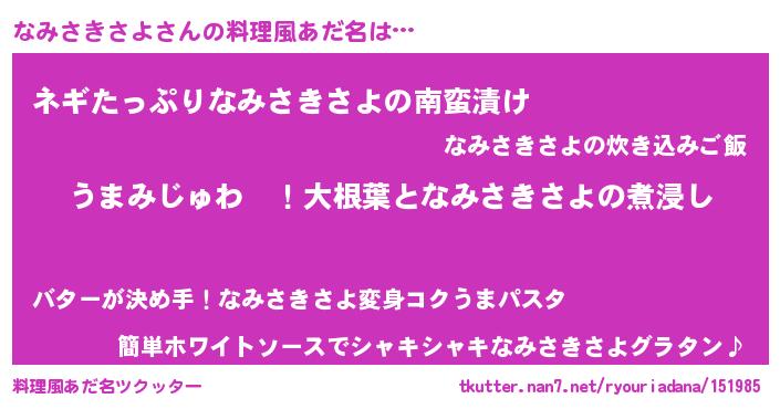 | 恥ずかしいあだ名 | 『なみっちょ』『プリティーなみさきさよ』 |