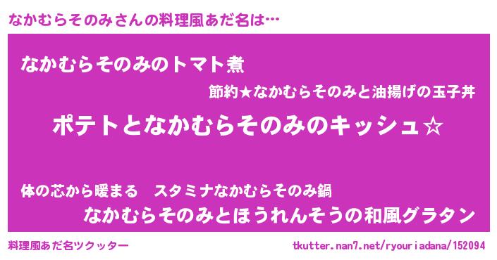 | 女子向けラノベタイトル風あだ名 | 『なかむらそのみの卵を拾いまして』 |