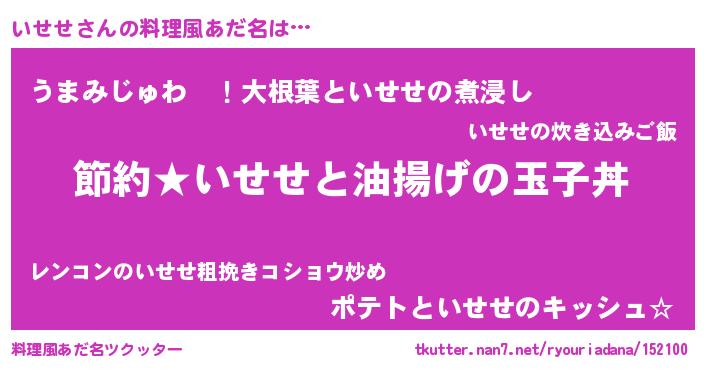 | 2回繰り返すあだ名 | 『いせいせ』『いいせせ』『おらおら』 |
