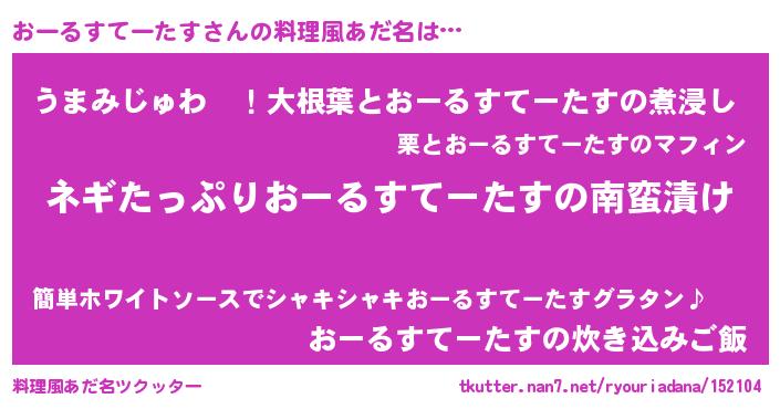 | 自動車の名前っぽいあだ名 | 『オーティマ』『オスラー』『オント』 |