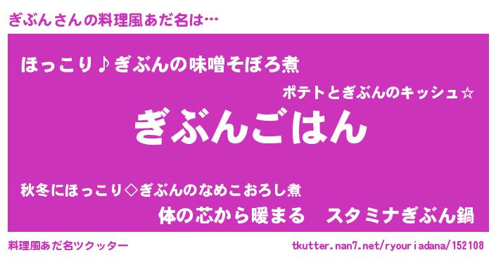 | ヘコむあだ名 | 『ぎぶにー』『つくし』『ぎぶお』 |