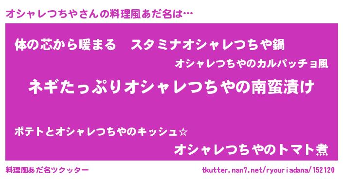 | 胡散臭い通販商品みたいなあだ名 | 『億万長者になれるブレスレット…その名も「オシャレつちや」』 |
