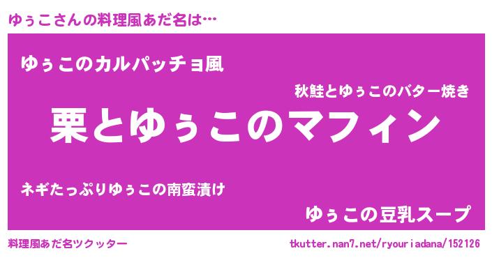 | ポケモン風あだ名 | 『ユゥゴンZ』『ユーゥイ』『ヒユゥコ』 |