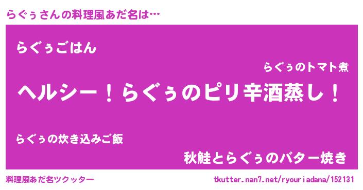 | 胡散臭い通販商品みたいなあだ名 | 『テレビで話題の高麗人参…その名も「らぐぅ」』 |