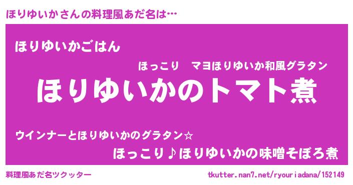 | 女子向けラノベタイトル風あだ名 | 『ほりゆいか夫妻のなれそめ』 |