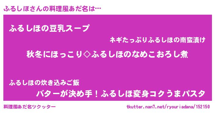 | 男性向けラノベタイトル風あだ名 | 『ふるしほに滅ぼされるだけの簡単なお仕事です』 |