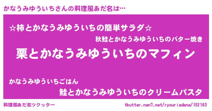| ヘコむあだ名 | 『かなうみゆういち(笑)』『かなふぇ~』 |