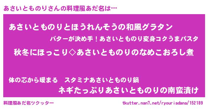 | 男性向けラノベタイトル風あだ名 | 『あさいとものりに滅ぼされるだけの簡単なお仕事です』 |