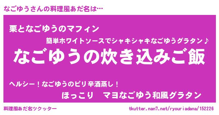 | 恥ずかしいあだ名 | 『ナゴリンリン』『ナゴユウデラックス』 |