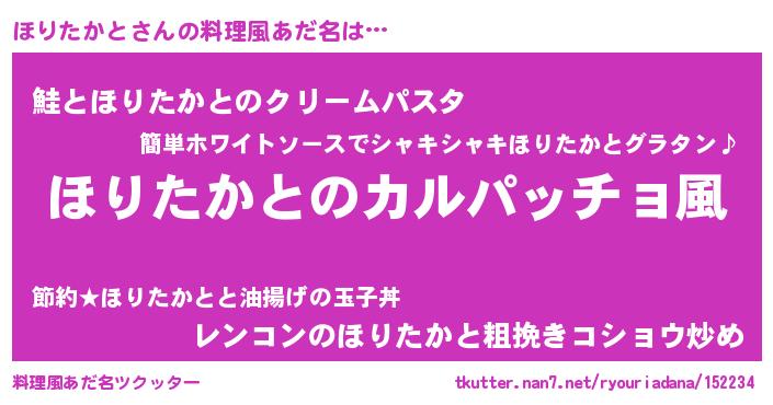 | 女子向けラノベタイトル風あだ名 | 『ほりたかとが死なない童話 林檎のほりたかとの診療簿』 |