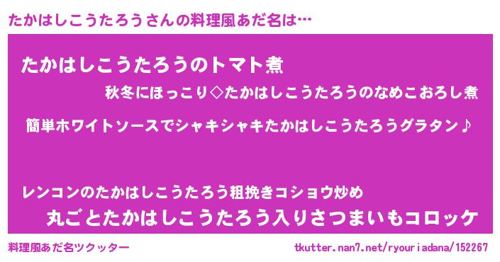 | 男性向けラノベタイトル風あだ名 | 『たかはしこうたろうの嫁は女の子じゃないと思った?』 |