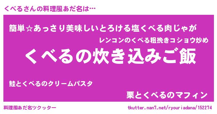 | 意味不明あだ名 | 『永久保存くべる』『自称くべる』 |
