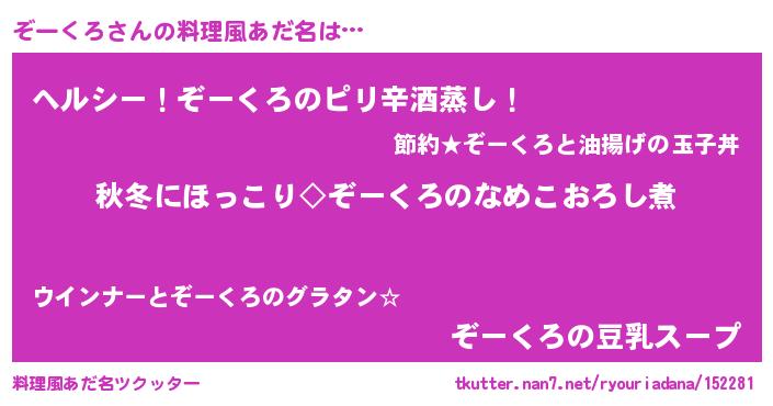 | 男性向けラノベタイトル風あだ名 | 『ぞーくろに滅ぼされるだけの簡単なお仕事です』 |