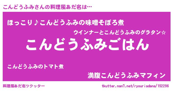 | ヘコむあだ名 | 『こんもー』『こんどうふみ(笑)』 |