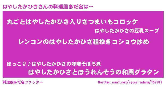 | 意味不明あだ名 | 『自称はやしたかひさ』 |