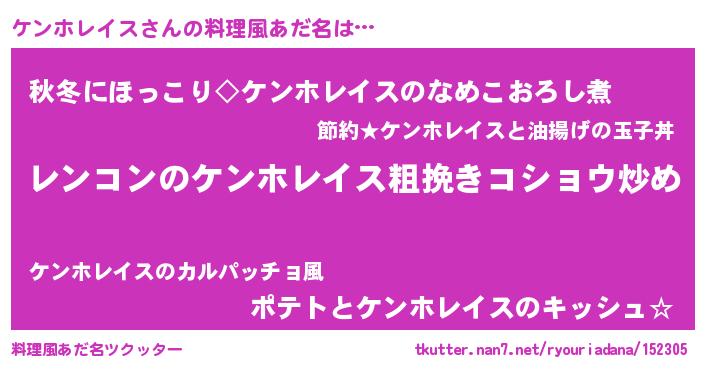 | ヘコむあだ名 | 『ケンっ子』『ケンもー』『なまこ酢』 |