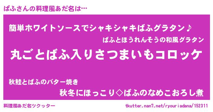 | 意味不明あだ名 | 『住所不定無職ばふ(43歳)』『ニラ科ばふ属』 |