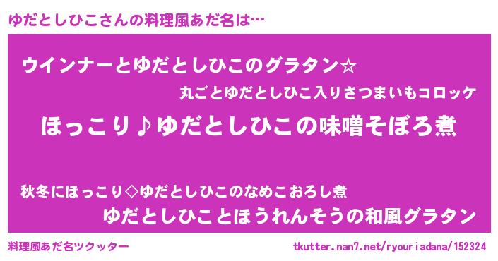 | ヘコむあだ名 | 『ゆだっふぃ~』『豆乳』『ゆだっ子』 |