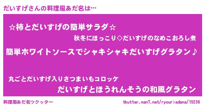 | ピコ太郎風あだ名 | 『ダイ次郎』『ダダ太郎』『ピダ三郎』 |