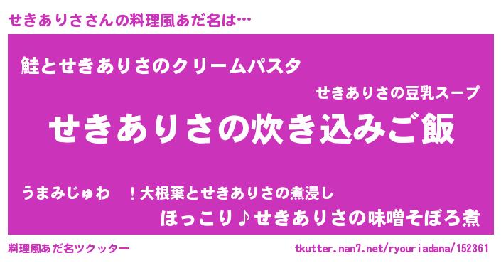 | 欧米人風あだ名 | 『せきありさ・ステッグマイヤー』 |