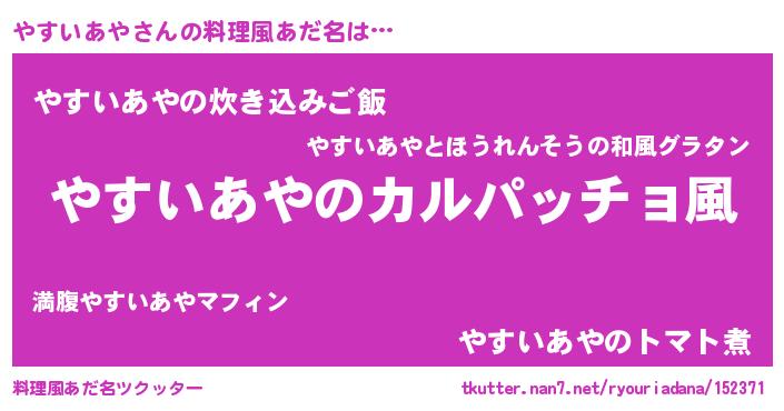| ヘコむあだ名 | 『やすいあや(苦笑)』『やすっちょ』 |