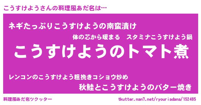 | 女子向けラノベタイトル風あだ名 | 『こうすけよう夫妻のなれそめ』 |