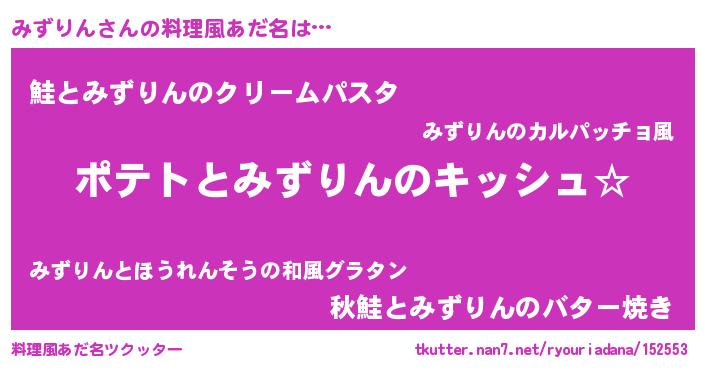 | ヘコむあだ名 | 『みずぷりん』『みずりん(笑)』 |
