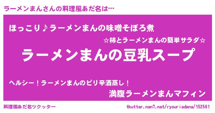 | 男性向けラノベタイトル風あだ名 | 『ダンジョンにラーメンまんを求めるのは間違っているだろうか』 |