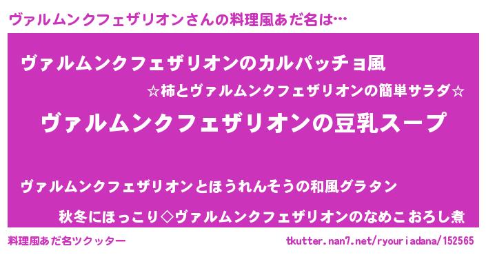 | 欧米人風あだ名 | 『ウサインヴァルムンクフェザリオン』 |