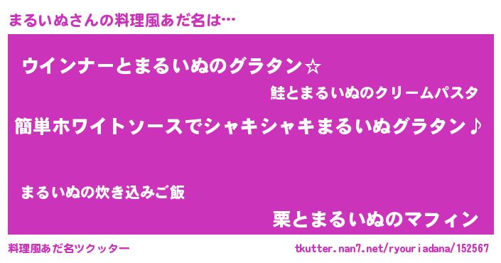 | 男性向けラノベタイトル風あだ名 | 『まるいぬの嫁は女の子じゃないと思った?』 |