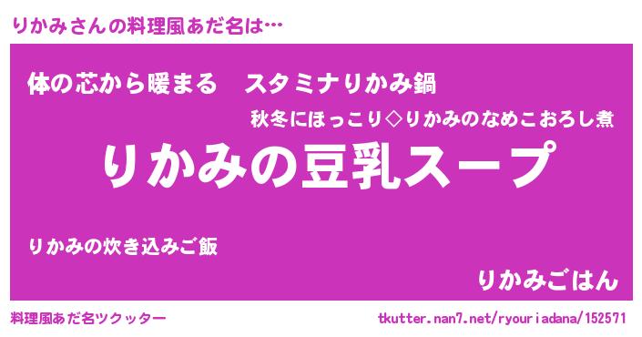 | 意味不明あだ名 | 『とにかく怪しいりかみ』 |