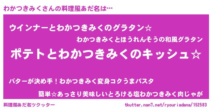 | 胡散臭い通販商品みたいなあだ名 | 『伝統あるサプリメント…その名も「わかつきみく」』 |