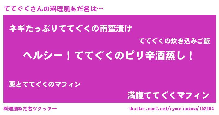 | 意味不明あだ名 | 『自称ててぐく』『ペロリンててぐく』 |
