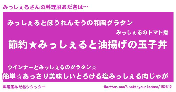 | ヘコむあだ名 | 『みっふぇ~』『みっしぇる(震え声)』 |