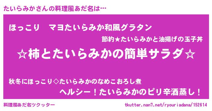 | 恥ずかしいあだ名 | 『タイラミカデラックス』『タイリンリン』 |