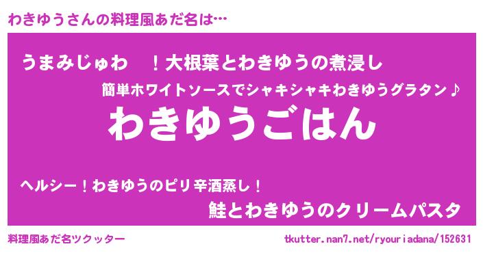 | 意味不明あだ名 | 『めかぶ科わきゆう属』『自称わきゆう』 |