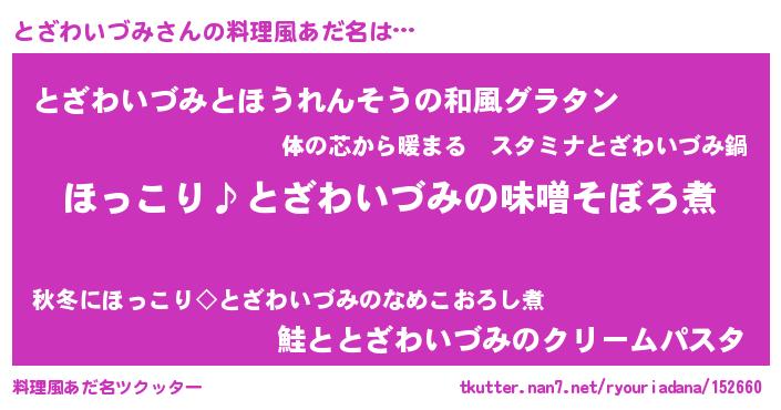 | 2回繰り返すあだ名 | 『とざとざ』『わいわい』『ととざざ』 |
