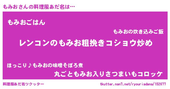 | ヘコむあだ名 | 『もみにー』『もみっちょ』『豆乳』 |