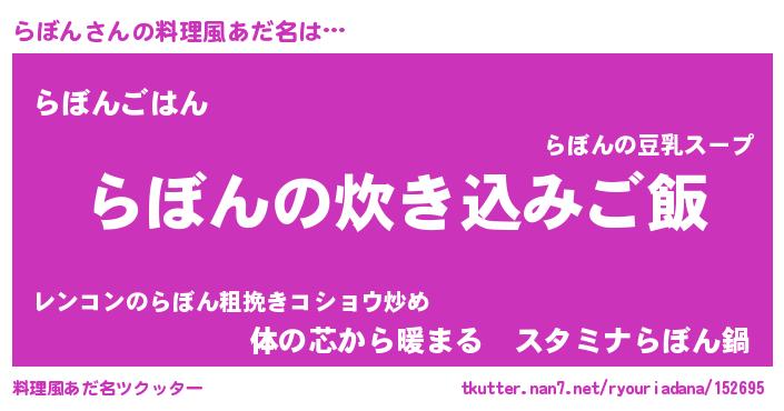 | 意味不明あだ名 | 『つくし科らぼん属』『自称らぼん』 |